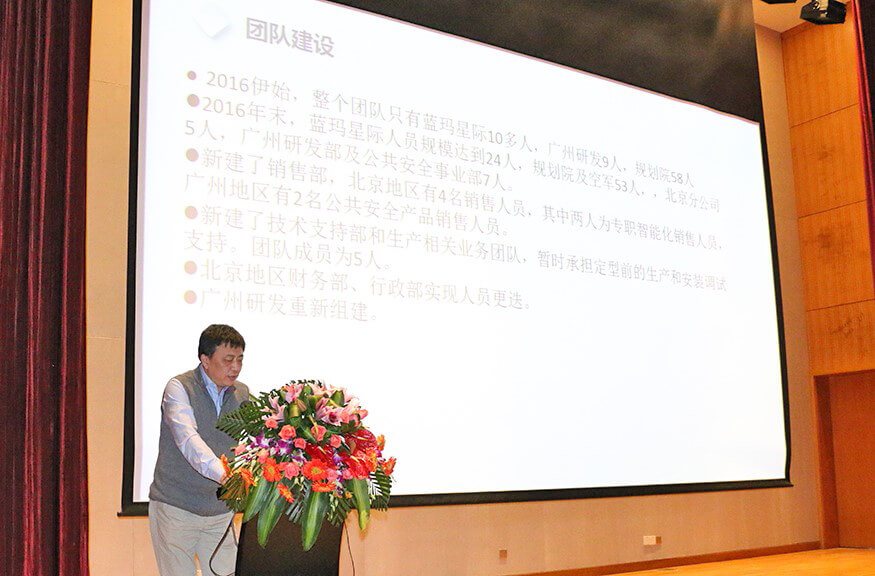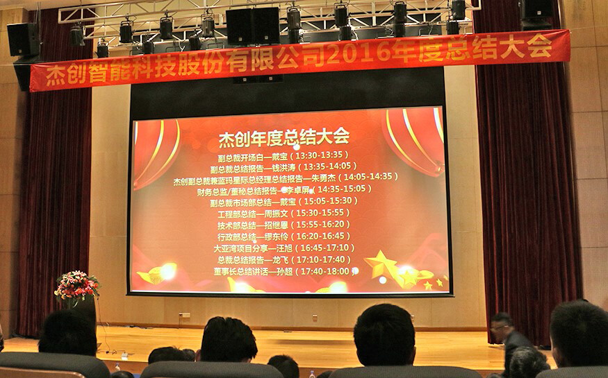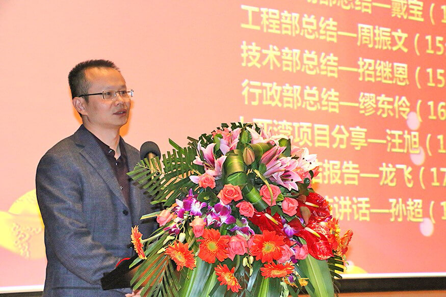 总结大会上,在公司副总裁戴宝先生激情洋溢的开场白后,副总裁钱洪涛先生、kaiyun开云电竞智能董事兼蓝玛星际总经理朱勇杰先生、财务总监兼董秘李卓屏女士、副总裁戴宝先生、工程部总监周振文先生、技术部总监招继恩先生、行政部总监缪东伶女士、工程部副总监汪旭先生、总裁龙飞先生先后登台,分别做了2016年度工作总结。